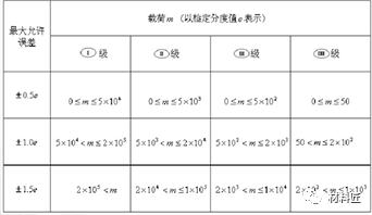 表二,天平的最大允許誤差