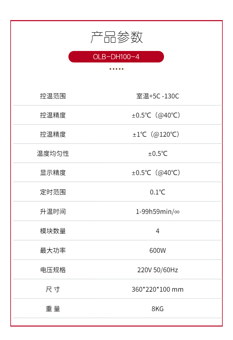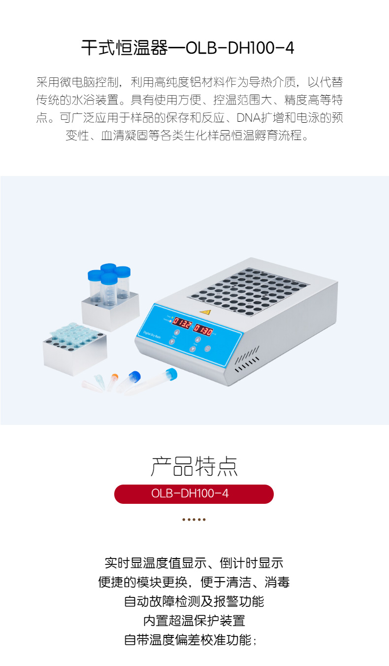 歐萊博OLB-DH100-4高溫型金屬浴,高溫型干式恒溫器 控溫范圍室溫+5℃~130℃