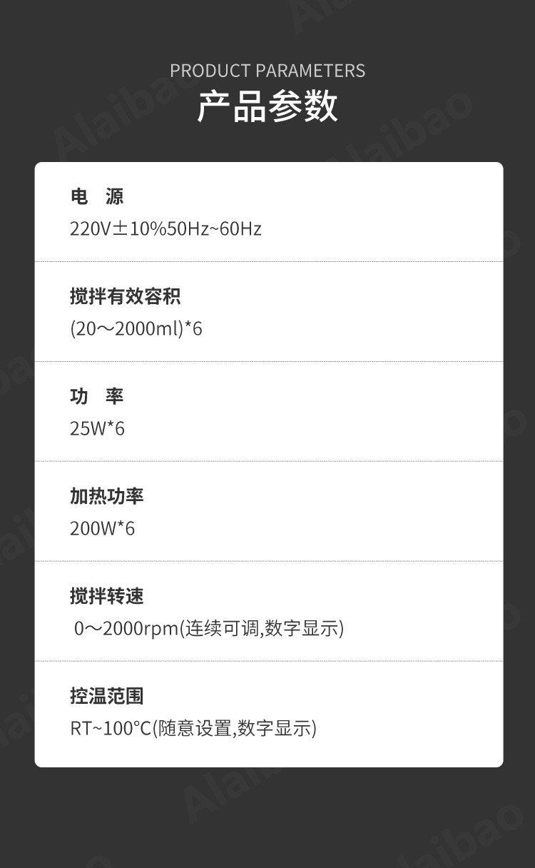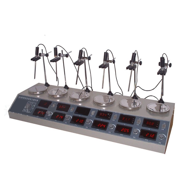 歐萊博HJ-6A數顯恒溫磁力攪拌器,攪拌功率40W*6RT-100數顯顯示溫度帶定時功能